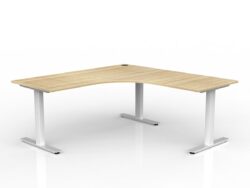 OL Agile Electric Height Adjustable 2-Column 90° Shared Desk – Oak Top White Frame – Without Cable Tray