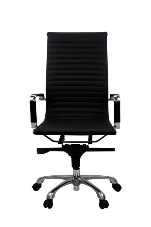 Features: Good quality PU covering Gas lift High Back Executive Chair Chrome base and arms for added style and elegance