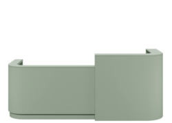 The Boatshed Reception desk is a sophisticated and sleek counter that features a gracefully curved privacy screen. It also includes a wrap-around shelf and a sturdy half-round leg.